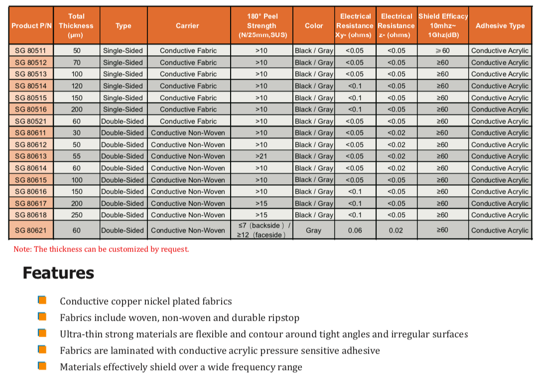 ShielditeTM導電布膠帶由鍍銅/鍍鎳的導電布/非織造布和獨特的導電壓敏丙烯酸粘合劑組成。